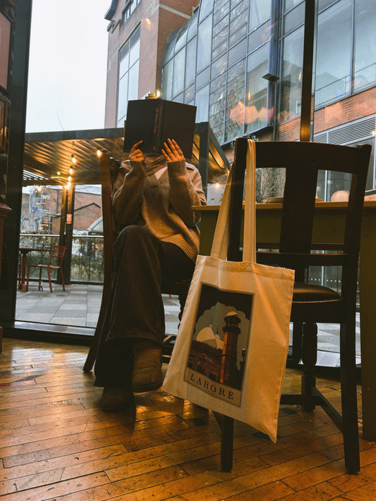 Celebrate what’s truly yours with our "Tu Jhoom" tote. Adorned with Mughal-inspired motifs and the uplifting lyric “jo hai tera lab jayega kar k koi bahana,” this ethically crafted, durable tote is perfect for daily adventures—with a touch of poetic charm and sustainability.