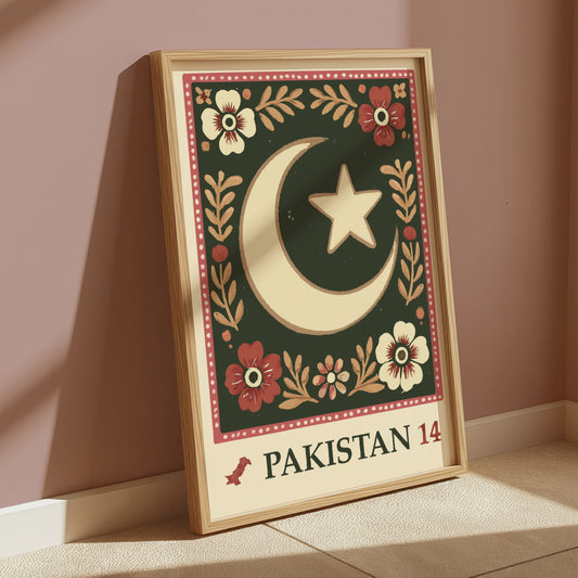 Pakistan Floral Vintage Stamp Art Print