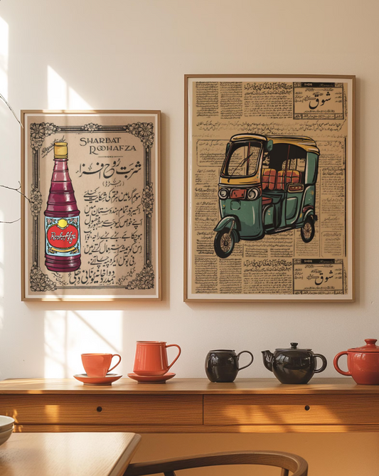Vintage Rickshaw and Rooh Afza Art Print Set