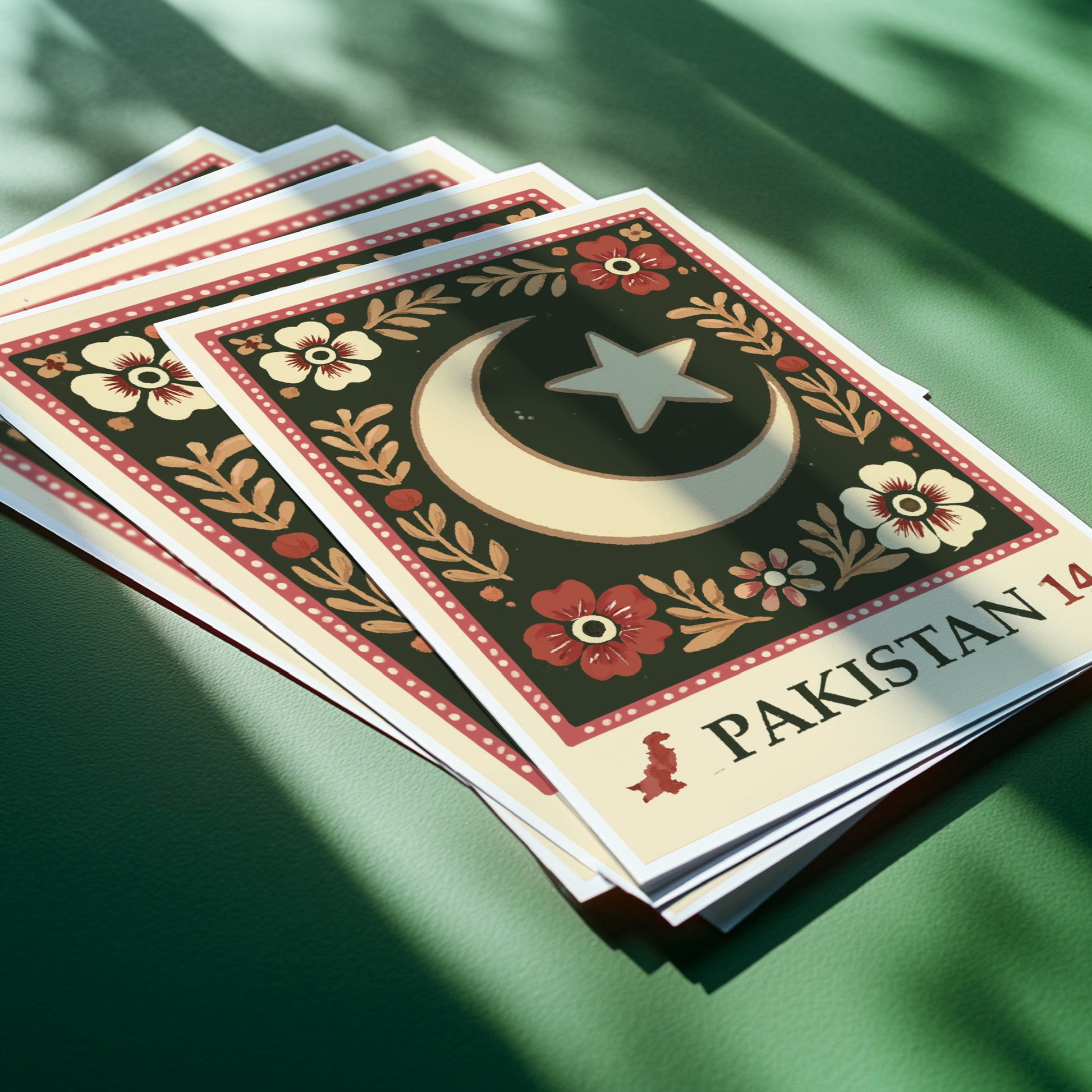 This art print features a charming, vintage stamp design inspired by Pakistan’s natural beauty. With a simple yet striking floral design, the print captures the essence of the country’s vibrant spirit in a playful and nostalgic way. The design evokes the timeless appeal of classic postage stamps, celebrating Pakistan's rich culture in a lighthearted and approachable manner.