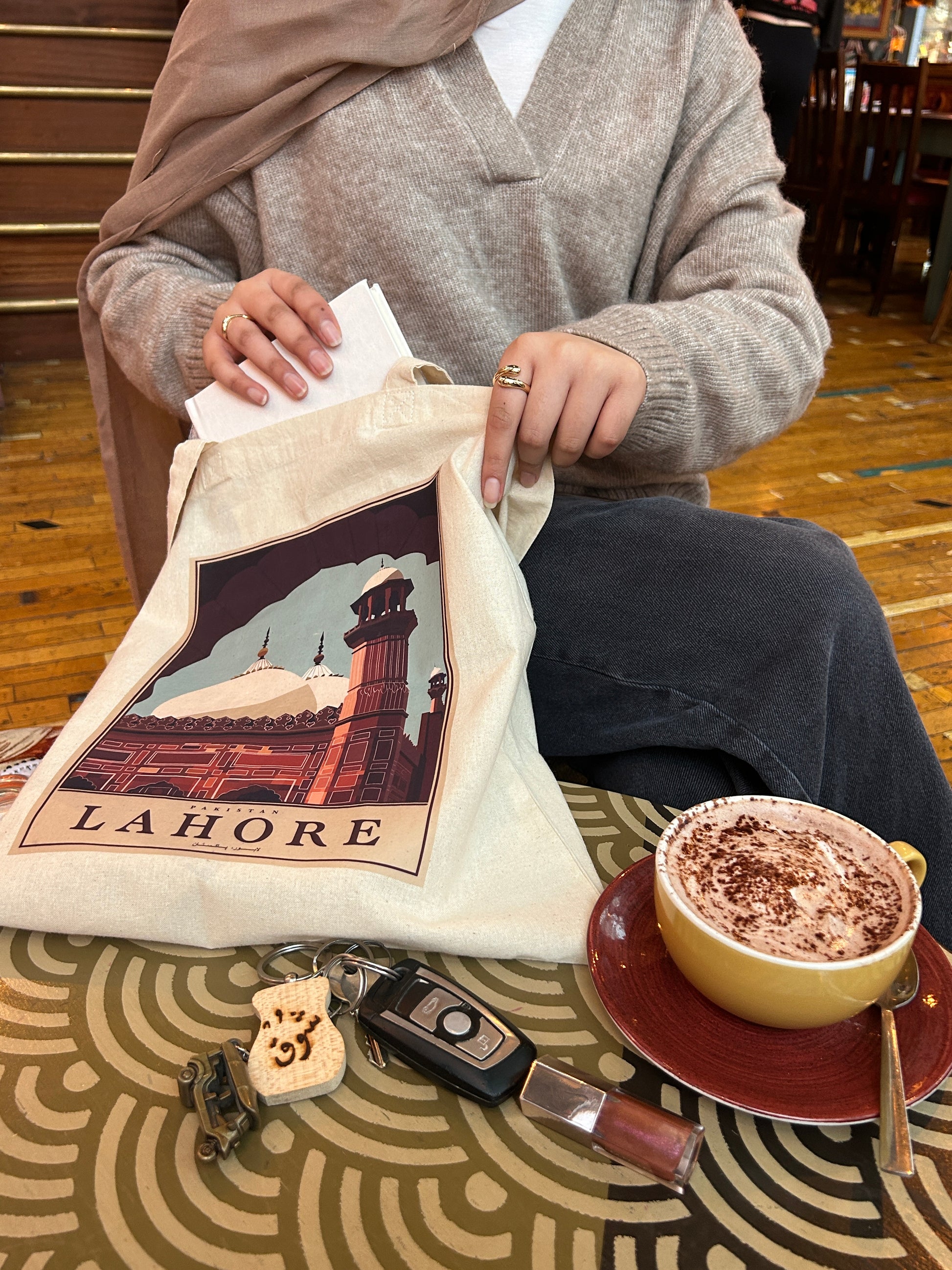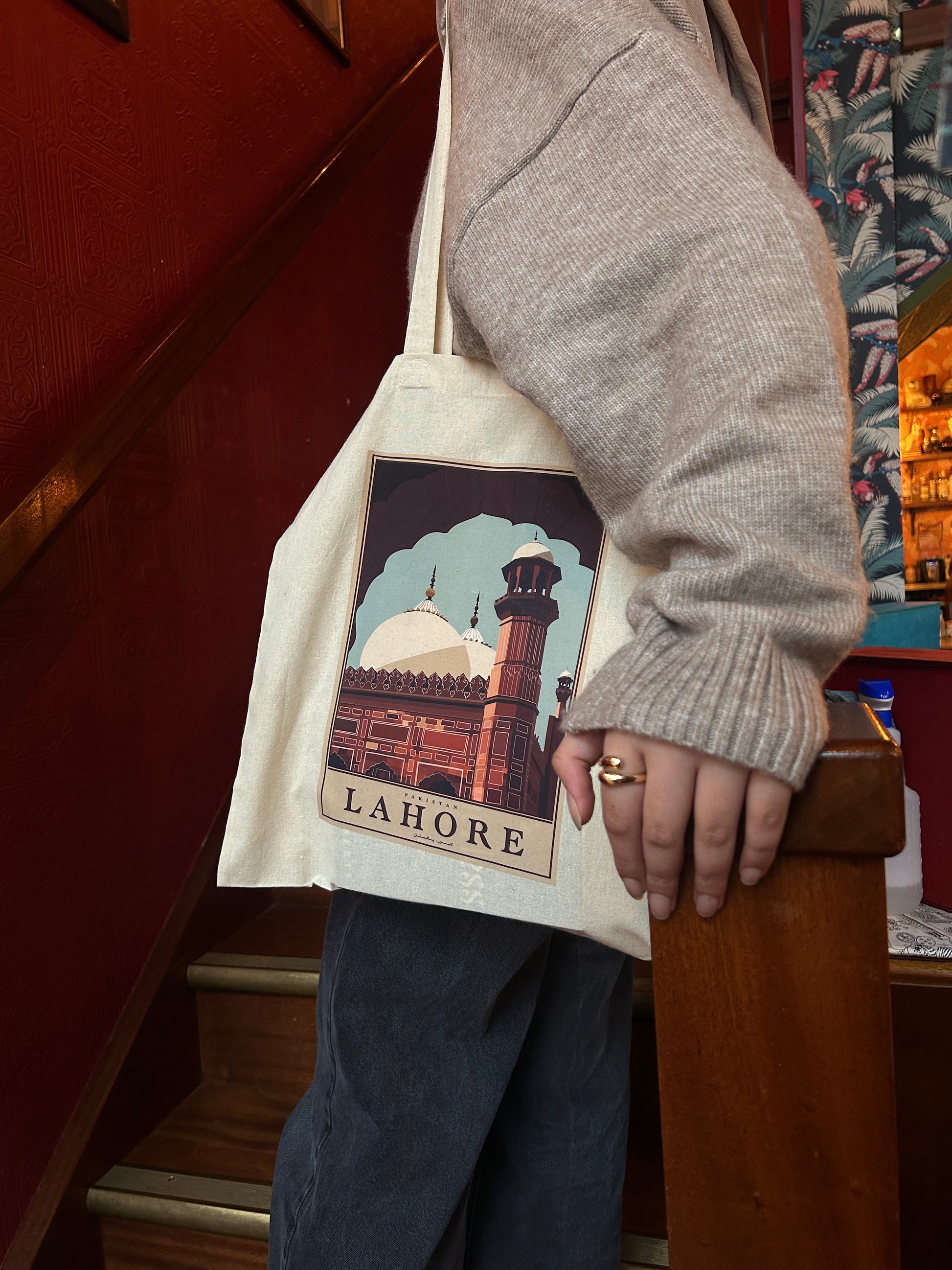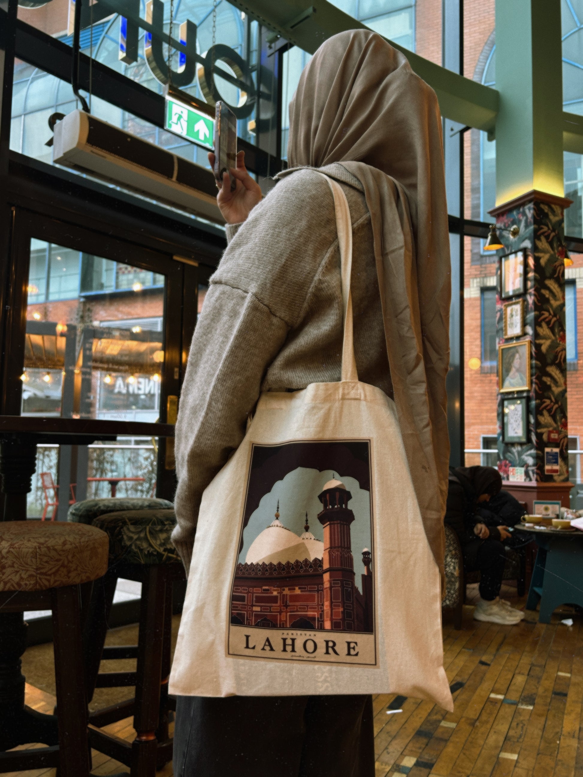 Lahore Tote Bag—a graceful blend of heritage and everyday practicality. This tote features a refined illustration of the iconic Badshahi Mosque, capturing its majestic silhouette and intricate details that speak to centuries of history and cultural pride. Each brushstroke of the design is a tribute to the mosque’s timeless beauty and the enduring spirit of our heritage.