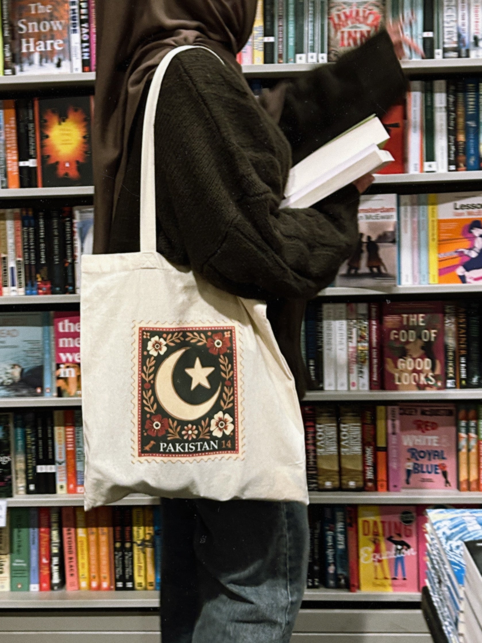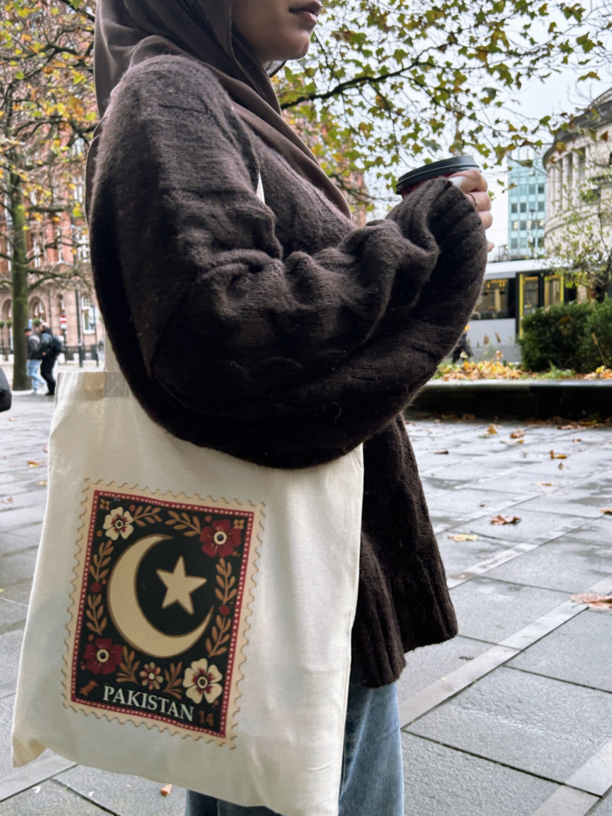 Carry a little piece of home wherever you go. Our tote bag is a warm reminder of Pakistan’s soulful spirit. With a design that feels like a cherished stamp from the past—a crescent and star embraced by gentle floral details—it whispers stories of tradition and nostalgia. The soft, earthy tones and carefully hand-finished details make it perfect for your daily errands, quiet moments at a café, or busy campus days. Made from eco-friendly cotton with sturdy, hand-stitched handles, this tote isn’t just practical—it’s a heartfelt connection to the beauty and memories of home.